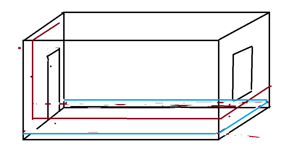 Вот потому и не хочу менять отопление и ставить модный котел, нет стабильности... красное подача над дверью заходит, синия обратка будь она не ладно лишних 9 метров. её в этой комнате вообще можно было не делать. Но делал не я. да и когла папа делал топились углем, чем больше труб тем дольше тепло, веди тогда печку топили с утра ведро угял и вечером ведро угля, а как провели газ переделывать не стал папа, к имеющейся системе газ котел подключил. короче в комнате блин 26-27 градусов стабильно. только я один в ней могу жить, туркмения закалила мне пофиг и 30 если будет. а если топить меньше скажем что б было 20-22 градуса то в других комнатах будет где то 16-17. потому и вентиляцию надо в корпусе хорошую. куда не поставь кругом от труб тепло идет, хоть на потолок лепи его.