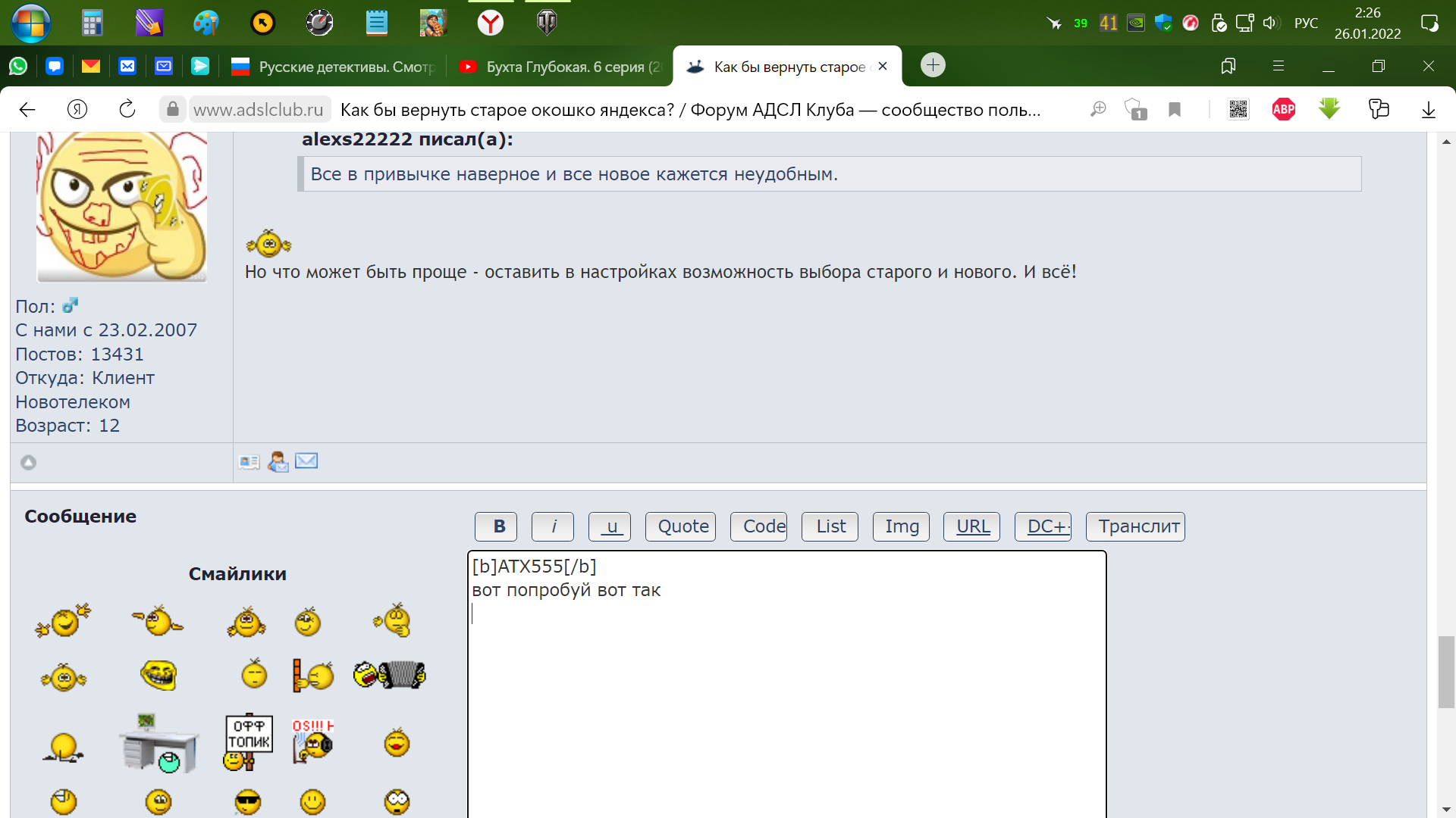 Последний раз редактировалось: alexs22222 (Ср 26-01-22 : 02-23), всего редактировалось 1 раз |