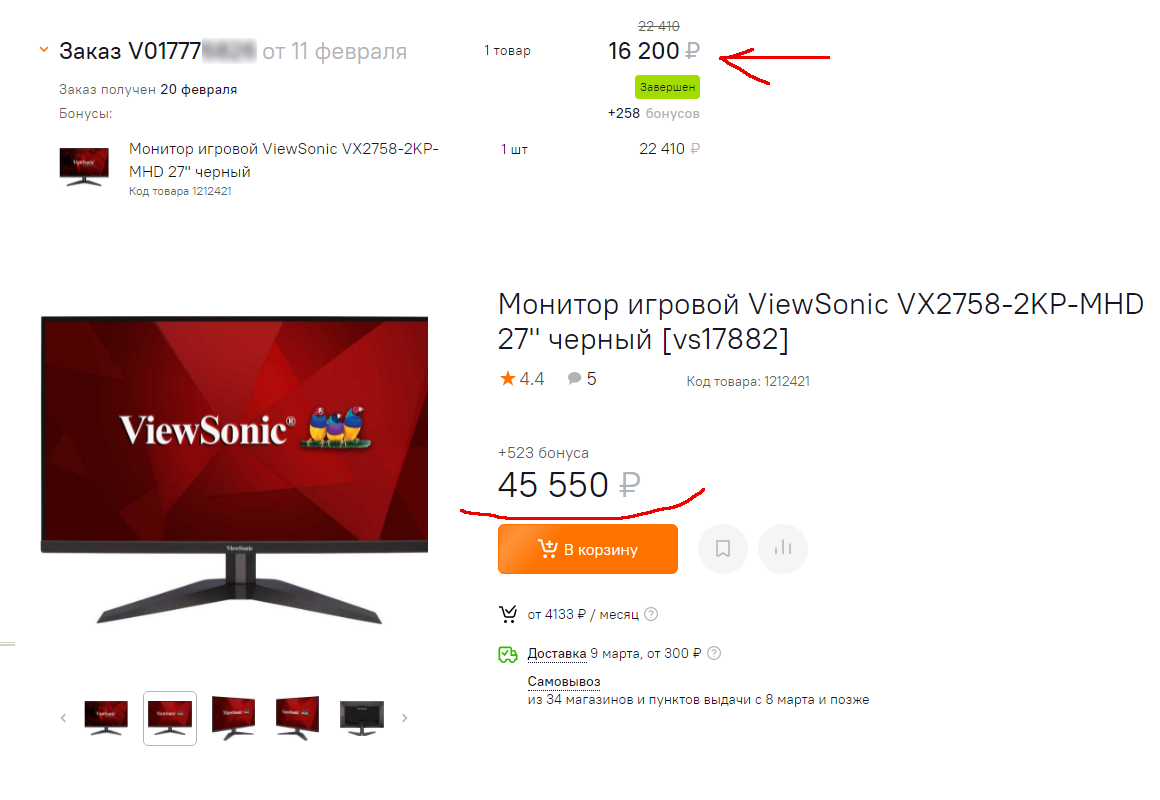 ViewSonic VX2758-2KP-MHD (отклик 3мс, гарантия указана 3г в Ситилинке)
