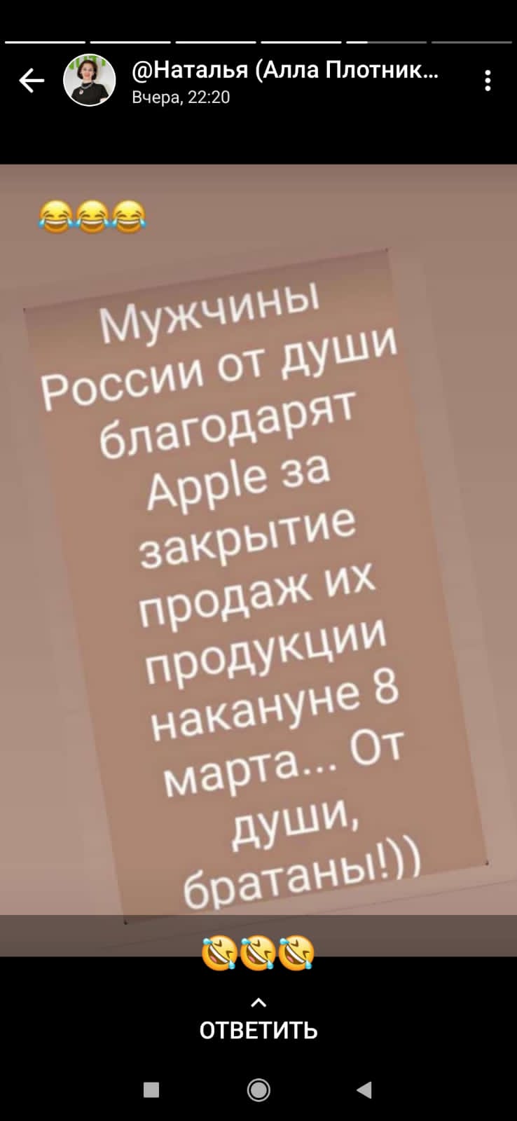 Не туда ты смотришь уж извени. Смотри глобальне, а яблоко 5-6 максимум марта возобновит продажи свои, нефига потери, а тут 8 марта и яблочки на подарочки разлитаются как блины на масленице.