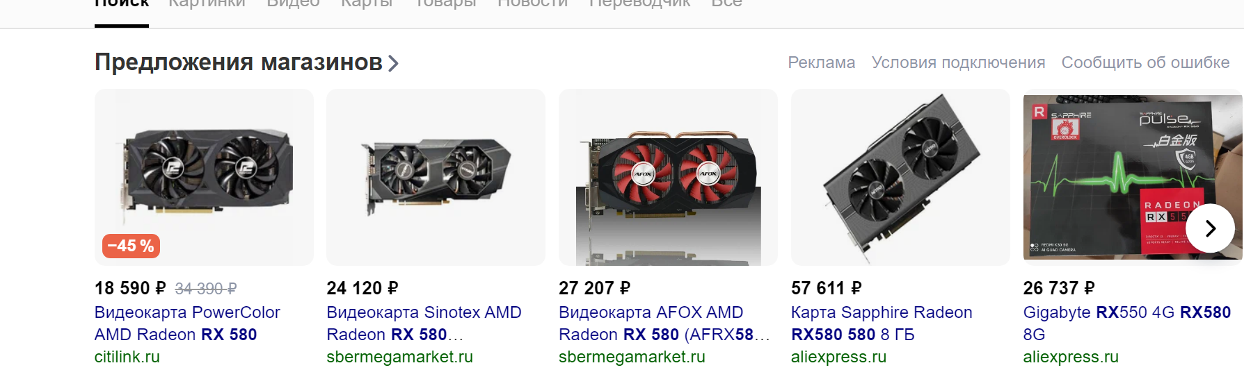 480 580 наверняка б/у будут. очень древняя карта, я бы опасался. но ценник 10тр конечно привлекательный |