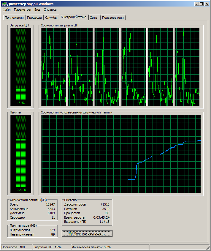 Тоже 16Гб, без браузеров занято 2,7 на все процессы,