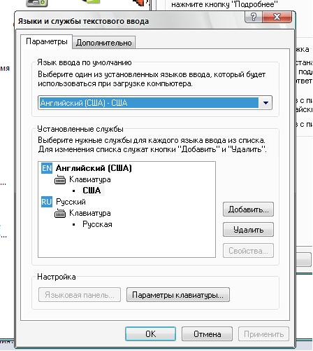 | А надо для юзера "Администратор" сделать настройку клавиатруы (под ним зайти и настроить). И в Висте вообще есть "перенос параметров настройки на ВСЕХ пользователей, в том числе System и т.д." Не знаю, есть ли это в ХР |