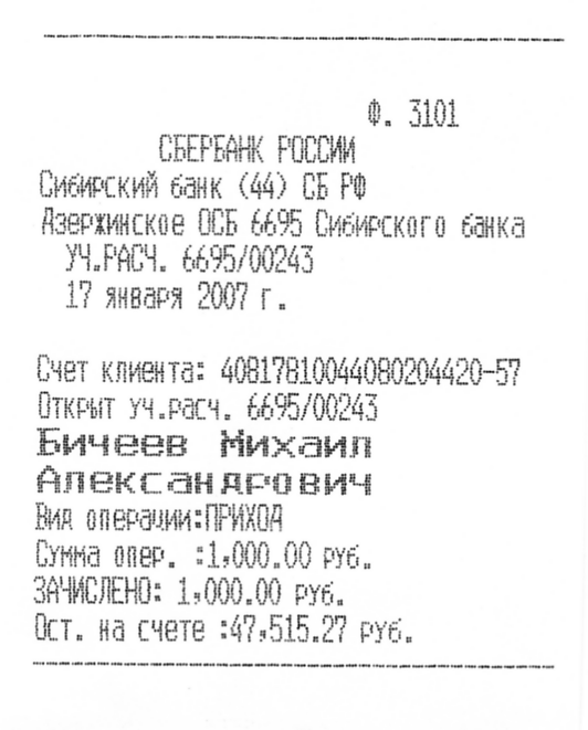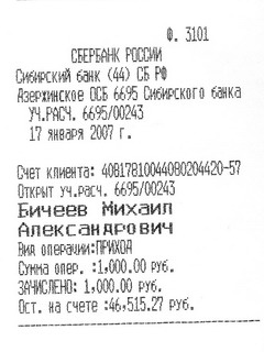 | Оплатил 1к. Прих.кассовый ордер №1130 от 16 января 2007 г. Если понадобится, то через недельку могу еще 2-3к... |