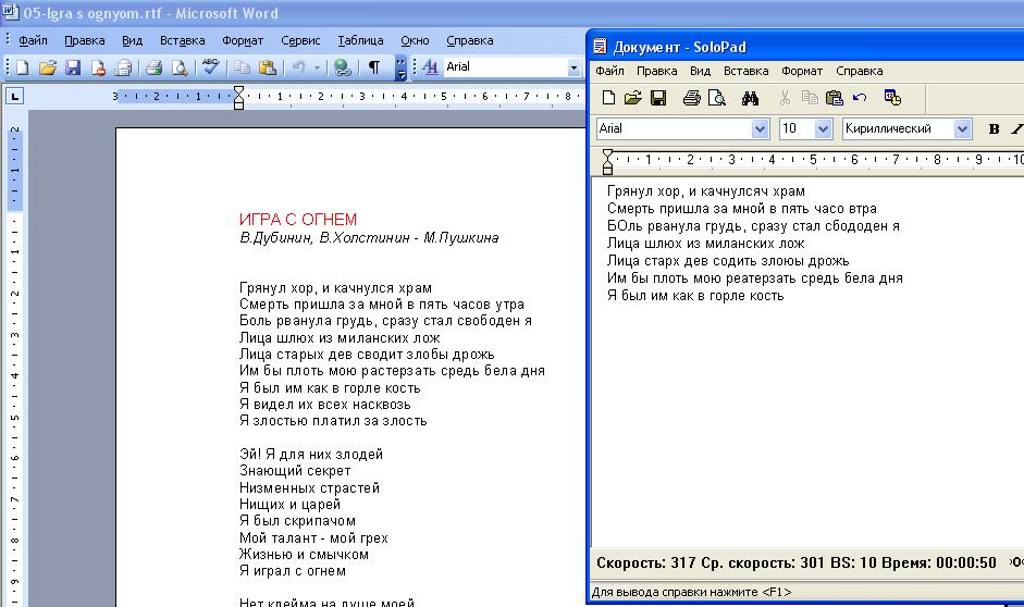 Печатаю вслепую, смотря на текст со скоростью 293. Как проверить не вслепую не знаю - что писать в голову не приходит.