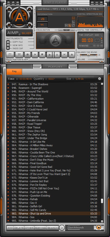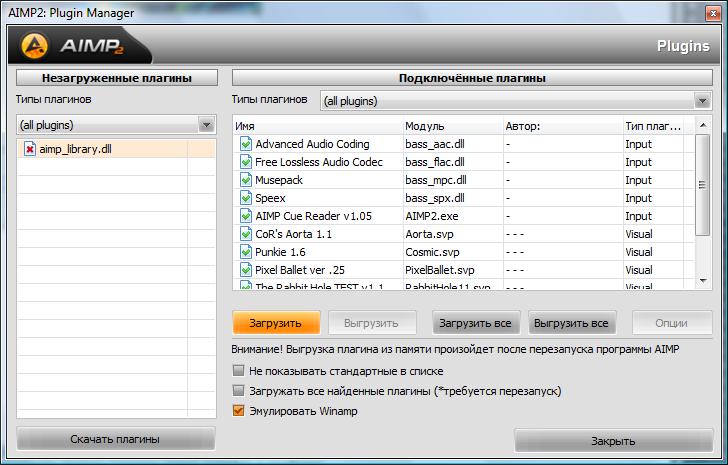 Аудиоплеер AIMP - бесплатная программа для воспроизведения аудиофайлов. Многофункциональность обеспечивается благодаря встроенным утилитам (можно перекодировать музыку из одного формата в другой, записать звук с микрофона или другого звукового устройства, отредактировать тэги музыкальных файлов, а так же группой переименовать или отсортировать их). Программа имеет чувствительный 18-ти полосный эквалайзер, встроенный аудио конвертер, граббер, редактор тэгов, звукозапись, мультиязычную поддержку, возможность настройки глобальных и локальных горячих клавиш, функцию вкл/выкл компьютера в заданное время или по окончанию плейлиста, потребляет минимум системных ресурсов, поддерживает множество форматов. Аудиоплеер AIMP может быть настроен индивидуально программа отличается большой гибкостью. С помощью плагинов можно расширять возможности стандартного пакета программы: добавлять новые утилиты и изменять уже имеющиеся. Программа полностью на русском языке (команда разработчиков из России)