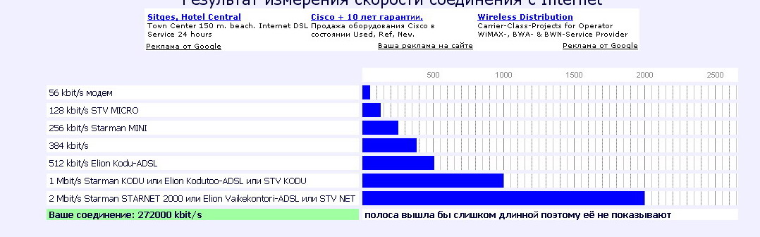 Иначе - никак. Такого рода тесты скорее расчитаны на то, чтобы показать скорость до конкретного тестируемого сайта, и уж никак не скорости подключения. О более менее приближенных результатах стоит рассуждать на основе этих показаний только при теоретическом максиумуме(скорости подключения т.е.) около 128кб в сек(ну или около того - главное то, что чем меньше скорость, тем меньше погрешность) |