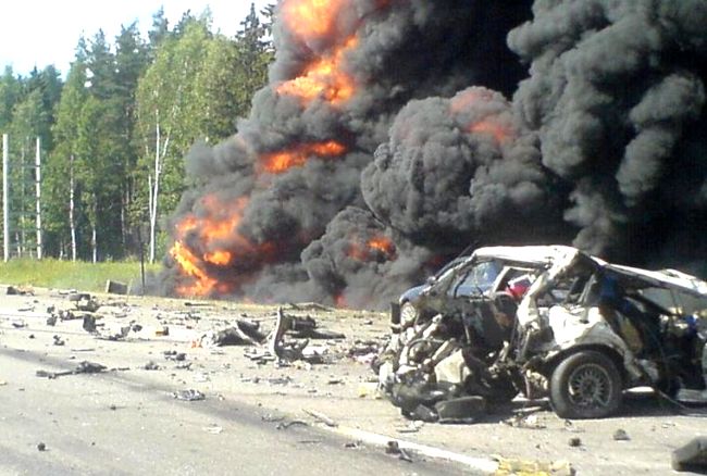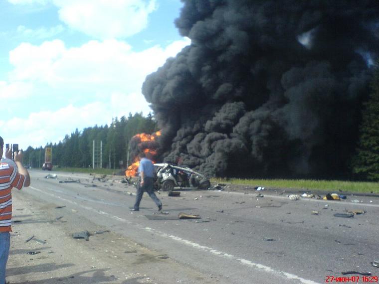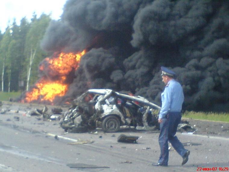На тех же фишках в комментах что водитель бензовоза госпитализирован.