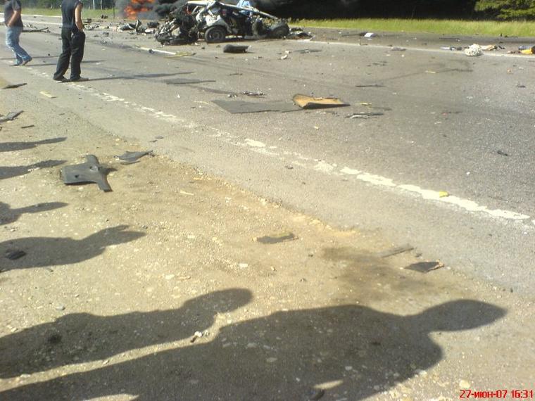 Трагедия произошла в 16.20 на 69 м километре Ленинградского шоссе в районе Солнечногорска. Водитель БМВ пошел на обгон по правой стороне, а затем выехал на встречную полосу и врезалась в бензовоз. От полученного удара машина с топливом съехала в кювет и загорелась. Смотрите ролик, который снимали друзья погибших, ехавшие на второй машине. |