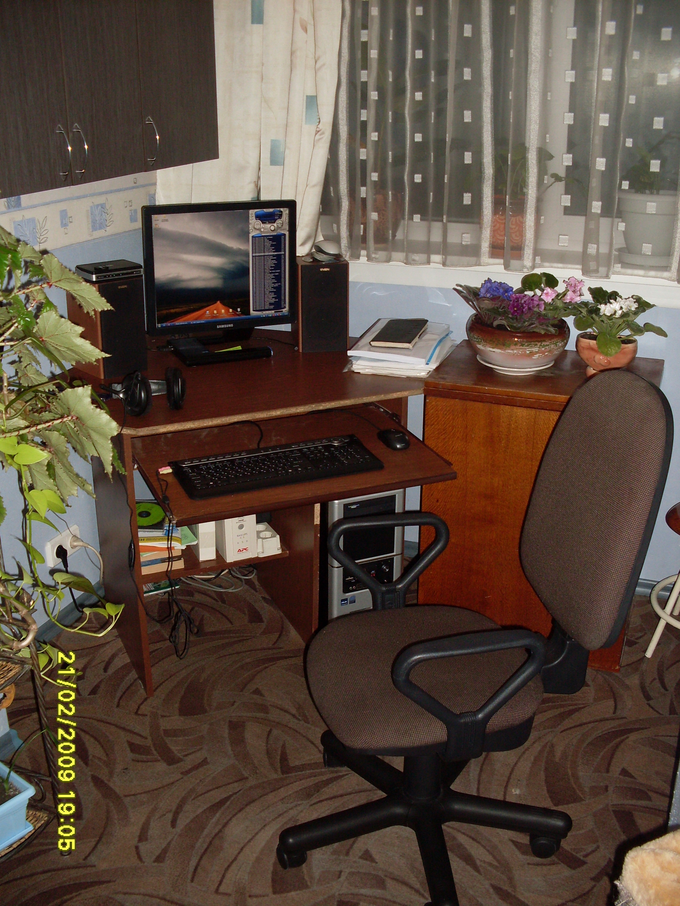 А это мое рабочее место. когда нет надобности работать за ПК. Пылесос - не в тему!