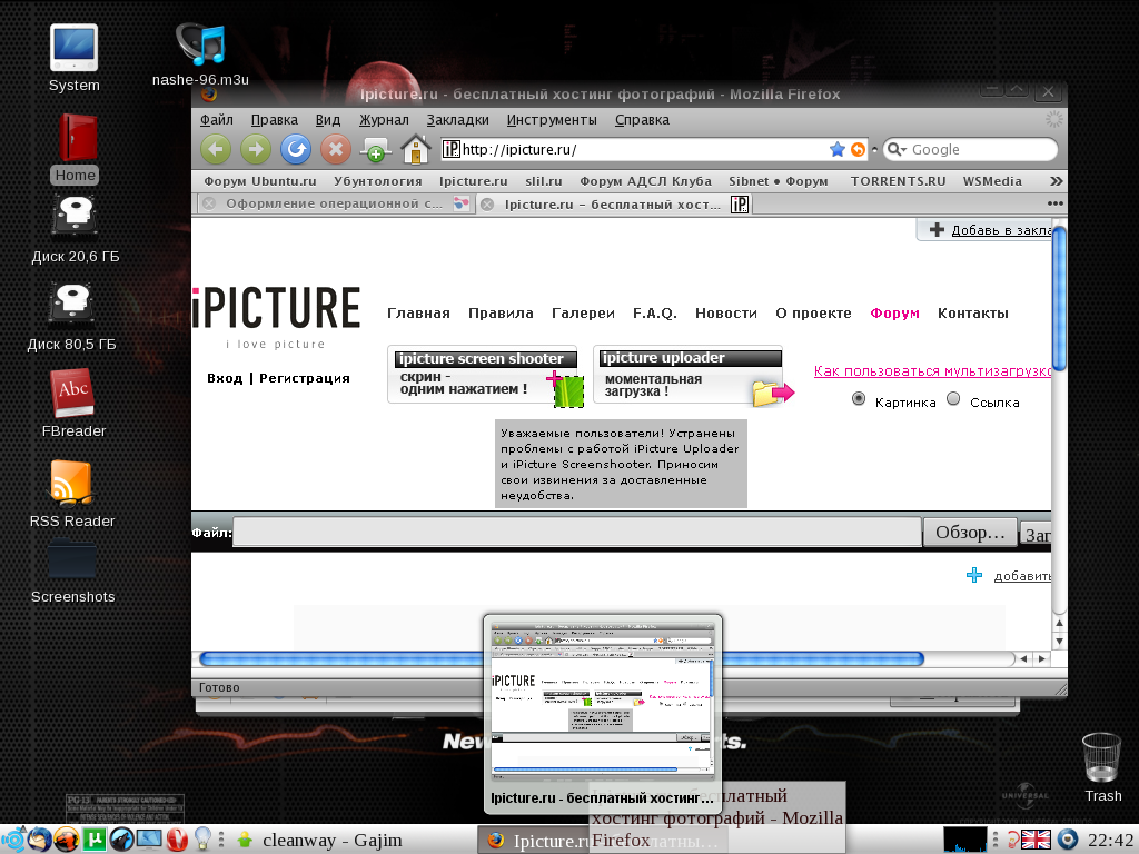 | Недавно перестановил Зверьку (выпуск - декабрь 2008 г.) Скачал несколько интересных обоин. Вот. что получилось:Последний раз редактировалось: pnik87 (Сб 21-02-09 : 20-25), всего редактировалось 1 раз |