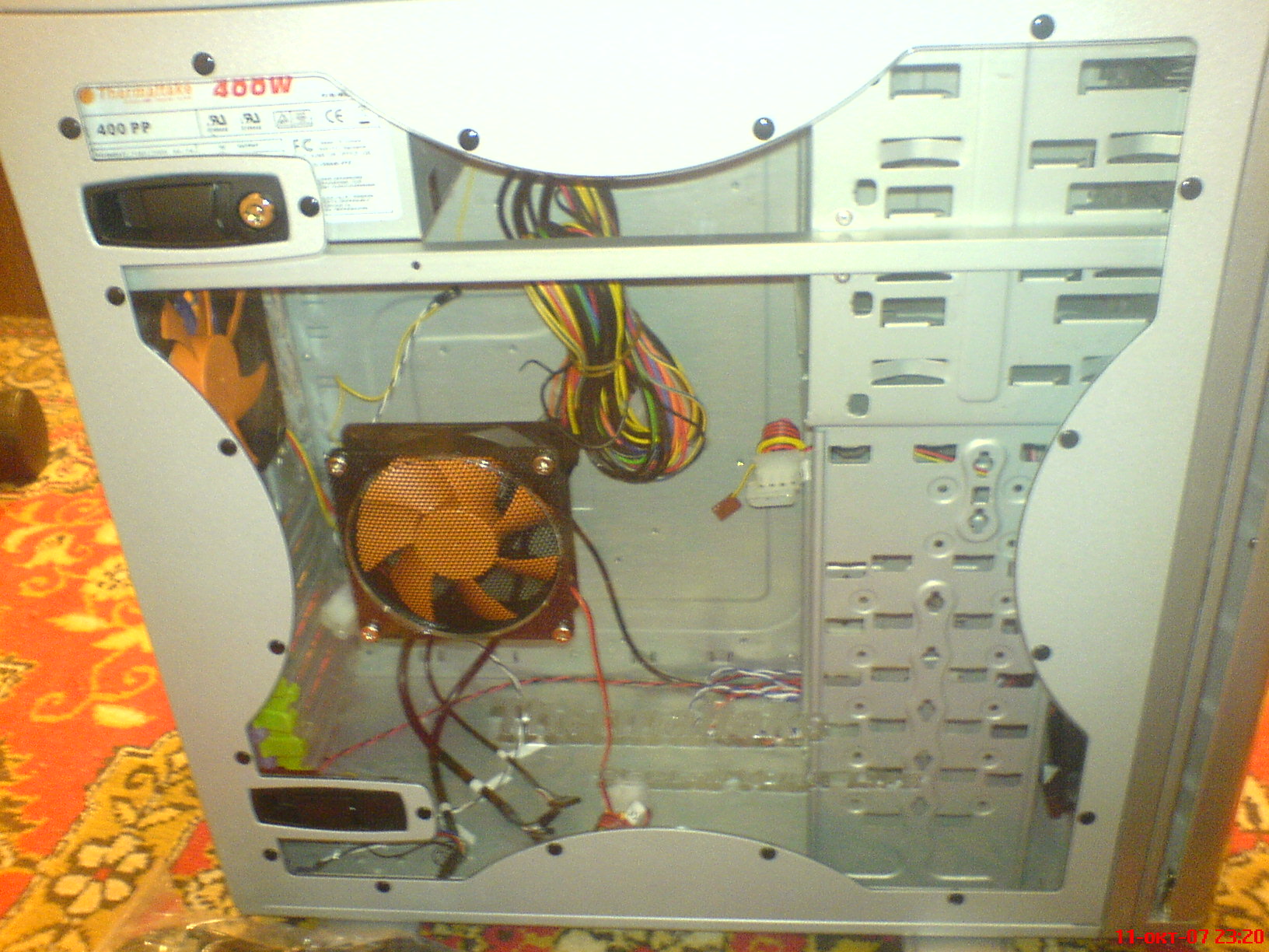 в общем есть корпус. В корпусе три вентилятора тоже на 5 вольт ну и плюс куллер на проце. на фотографии корпуса видно только два. третий спереди торчит. И в общем все это дело практически не слышно. РАзве что куллер проца оборотах на 3000 при разгоне.