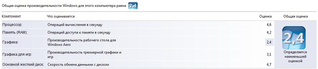 Кстати, такой результат в висте может быть потому, что этот вистовский тест у меня дома недостаточно нагрузил процессор, чтобы он поднял множитель и на всю катушку отработал. То бишь комп на энергосберегающем режиме тест откатал - вот и 2,4 балла. А когда 3,1 - это комп каким-то процессом уже был "ракочегарен". Поскольку балл - за видяху, то либо во втором случае она успела отхапать себе память до теста, а в первом случае она копировала из основной части оперативки данные в свою область - на этом время потерялось. Если сразу на второй раз тест запустить - было бы у обоих 3,1 наверняка. Но и то, кстати - это тест настолько корявый... Мой комп он в 4,5 оценивает. Комп друга (Атлон 64 2,8, GF7600, гиг оперативы, частота шин вообще намного меньше) - тоже в те же самые 4,5. Когда у него крайзис на максах даже не запускается, а у меня - не тормозит (1024х768, все настройки - в максимум). Так что вистовский тестик ну очень относительный.