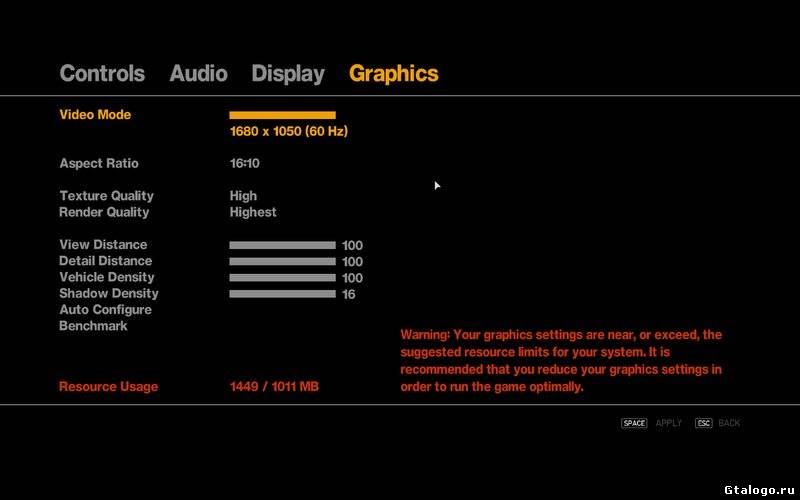 Надпись "Resource Usage" означает "Использование ресурсов", а именно Видео память!