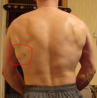 от обруча? хм... на первой фотке это не просто чуток покрасневший синяк - это кровавый синяк...хотя может обруч такие тоже оставляет, если им прилично отоварить  |