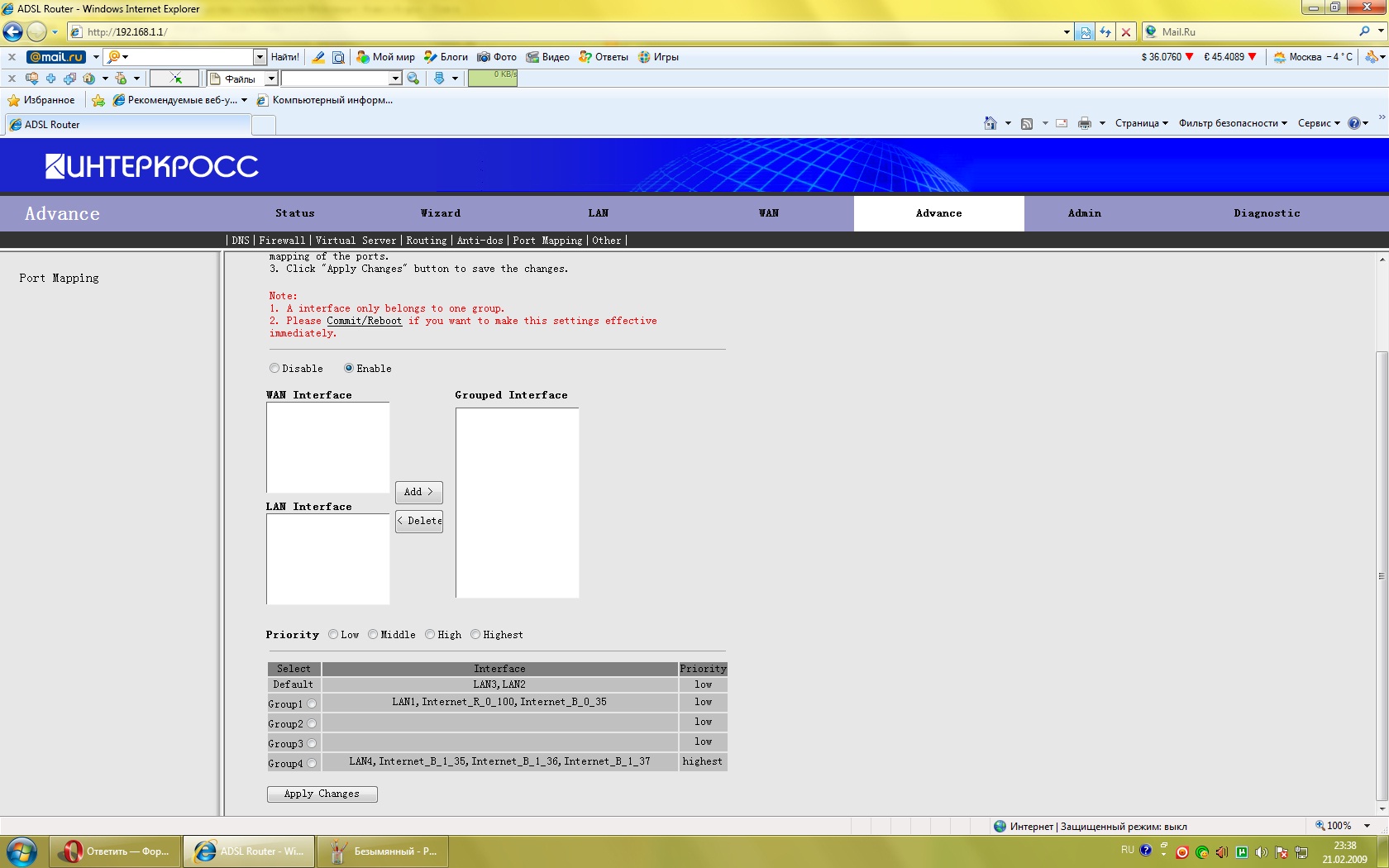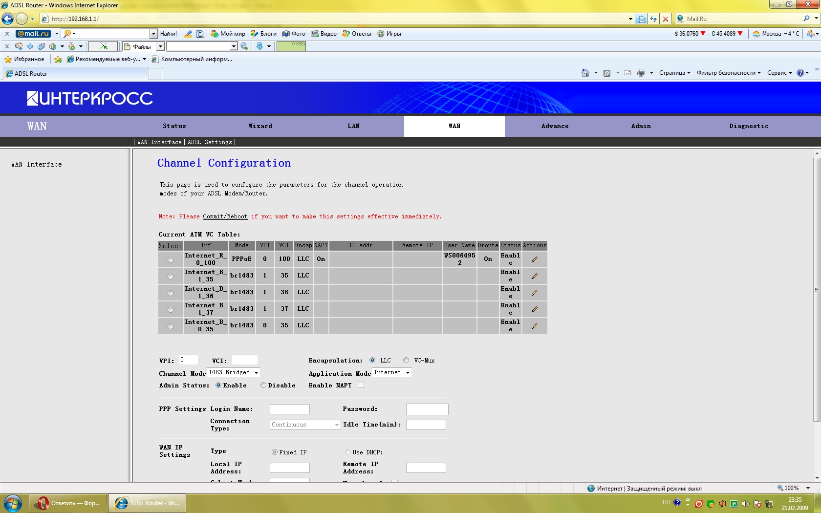 Кстати с этим интеркроссом тоже комп иногда виснуть стал.правда форумы говорят моя Windows 7 с интеркроссом у многих не дружит совсем...иногда просто по каким-либо причинам прерывается соединение с инетом - лечится перезагрузкой модема...впринципе не чаще раза в двое суток происходит терпеть можно. главное работает. отпишитесь о качестве если настроете. удачи.