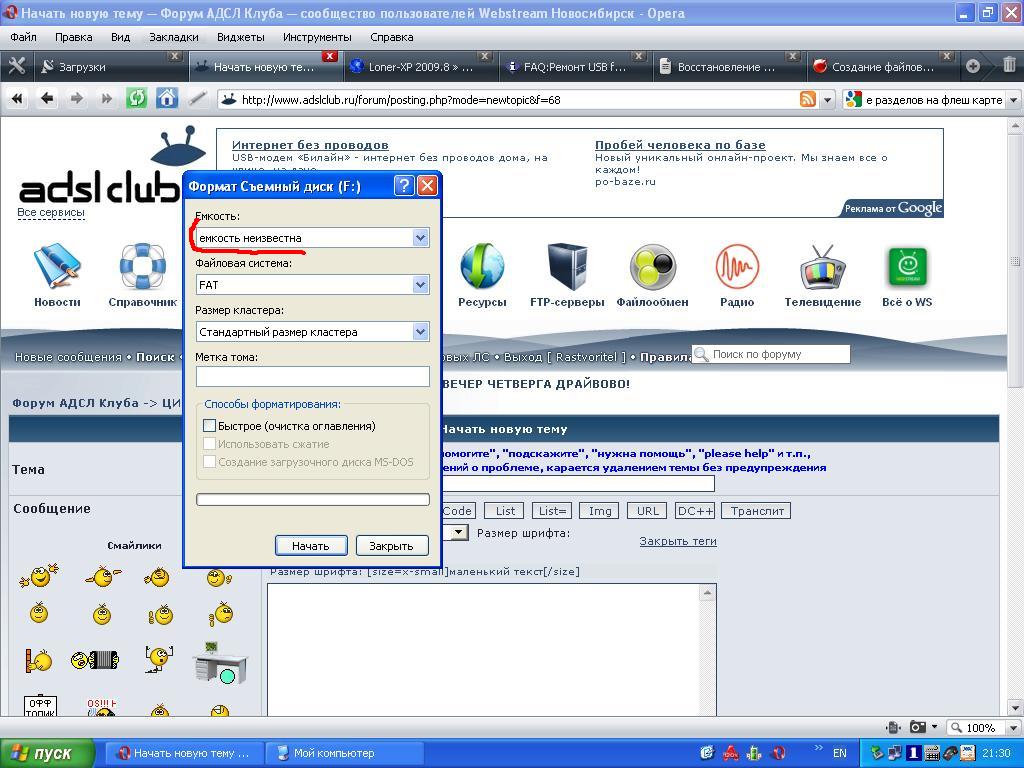 у меня что то случилось с флешкой, пишет что емкость не известна и не форматируется