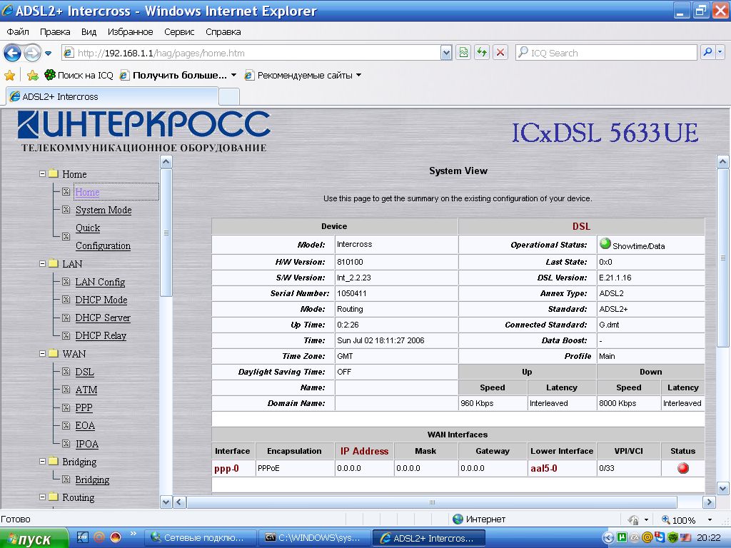 Conexant. По данному типу модемов по поводу альтернативной перепрошивки пока ничего сказать не могу, кроме того, что версия DSP-кода в текущей прошивки модема, скрин которого приведён выше, очень старая со всеми вытекающими последствиями нестабильности соединения. |
