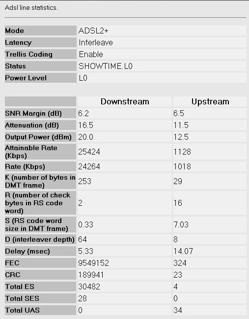 Какой используется DSLAM? Профиль с адаптацией по startup или динамический с адаптацией в режиме реального времени? Очень много ошибок по входящему каналу, INP_min на входящий канал вообще задан (такое чувство, что нет, либо профиль с адаптацией по startup , а не runtime)? При таком числе ошибок Delay_max следовало бы сделать 16 по входящему каналу, 16 по исходящему (тем более, если не задан INP_min), либо 16 по входящему, 8 по исходящему, а не с точностью, да наоборот, как Вам сделали. Какова расширенная конфигурация параметров профиля? Annex M включен на DSLAM? Почему сейчас простой 2+?