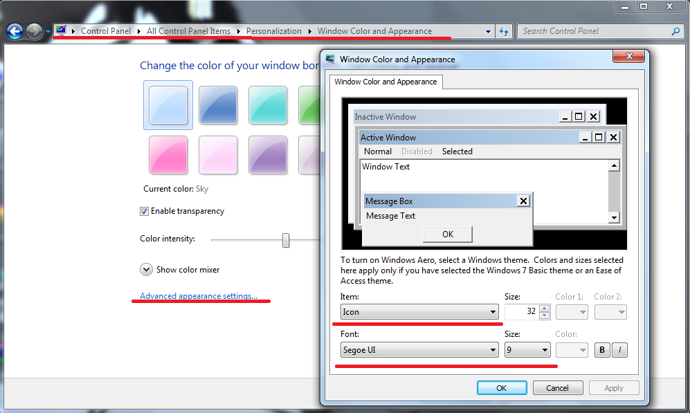 Подскажите, как изменить шрифт значков рабочего стола в Windows 7?