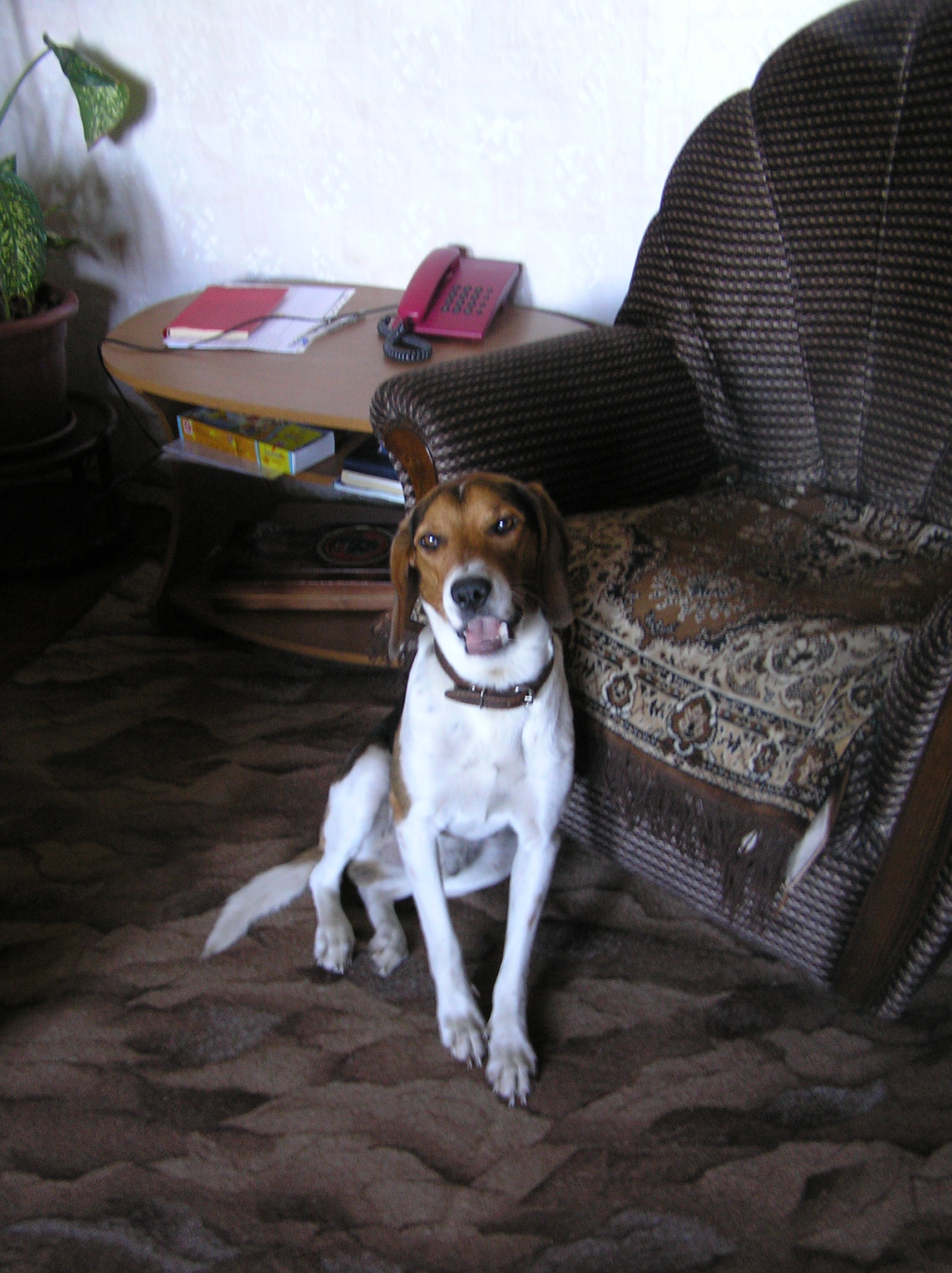 Зовут Линда, толстая и ленивая, пока не вывезут на дачу.