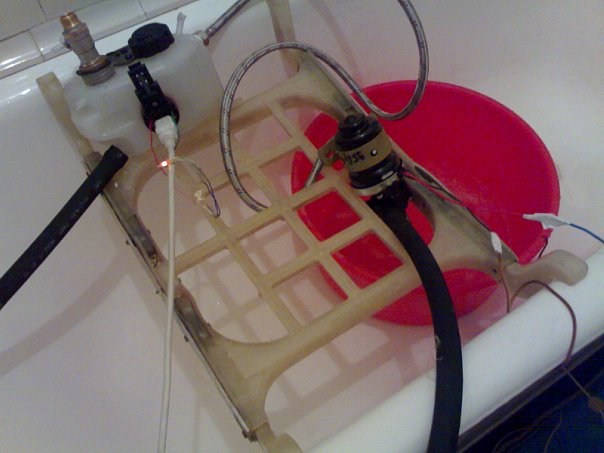 Как и знал, что не надо всё разом вываливать. Активность рукодельцев ниже ожидаемой. Ну чтож, буду вдохновлять своим примером. Вот очередной "шедевр" так сказать умывальник. С бутылкой всё понятно, а вот с крышкой пришлось повозиться. Обрезал резьбу от болта, просверлил отверстие в крышке немного больше чем диаметр болта и вуаля........ да не тут то было, протекает. И вот оно озарение, нужно нагреть шляпку поместить болт на место и немного потянуть чтобы крышка расплавившись приняла форму шляпки. Так и сделал, но опять ошибка, попытался извлечь болт не дав остыть а пластмасс естественно приклеился и оторвался вмести с болтом. Зная это решивший повторить данный подвиг может избежать моей ошибки опустив в воду крышку вмести с болтом, только потом разъединять их. В общем пришлось потом повыёживаться (на фото видно) но тем не менее достигнуть желаемого результата используя выше описанный приём.