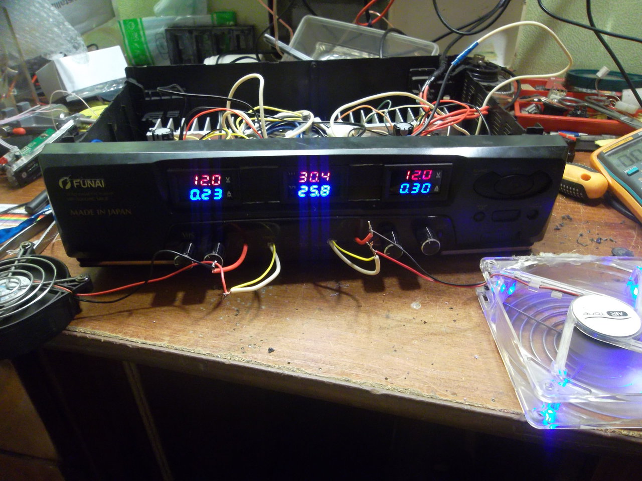 | Конструкция выходного дня. Блок питания с регулируемым ограничением по току. 1,4-23,9 вольта, до 6 ампер постоянной нагрузки. Собирается полностью из китайских модулей и радиокомпонентов. Корпус из рекламного вспененного ПВХ, пилил самодельной мини циркулярочкой, клеил суперклеем, из шприца 2мл через иглу, путем нанесения на внешний угол примыкания деталей. Держит очень прочно. ПВХ бэушный, был обклеен уже оракалом, выбрал черные места. Применение обширное, питание любых радиосхем не требовательных к качеству питающего напряжения( все компоненты импульсные преоброзователи, шумят), зарядка любых аккумуляторов, хоть от авто на 60 Ач, хоть от вертолетика на 70 мАч. В будущем на панель добавится разъем УСБ, зарядка телефонов с контролем зарядного тока появится, прямое питание ардуинок. |