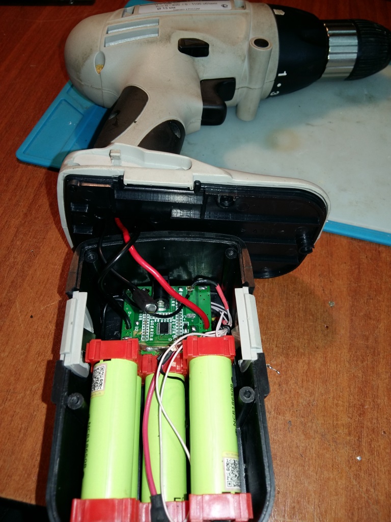 Сломались аккумуляторы в шуруповерте Интерскол 18 В. Получилось так на литий ионных аккумуляторах. Цена вопроса около 1000 руб. Модернизация проведена исключительно из соображаний "дорог как память".