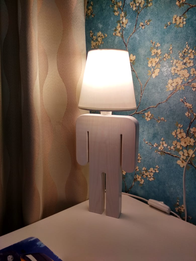Изначально планировался "человечек" склеенный из двух половинок 30мм под цоколь Е27, а вместо абажура большая круглая лампа.