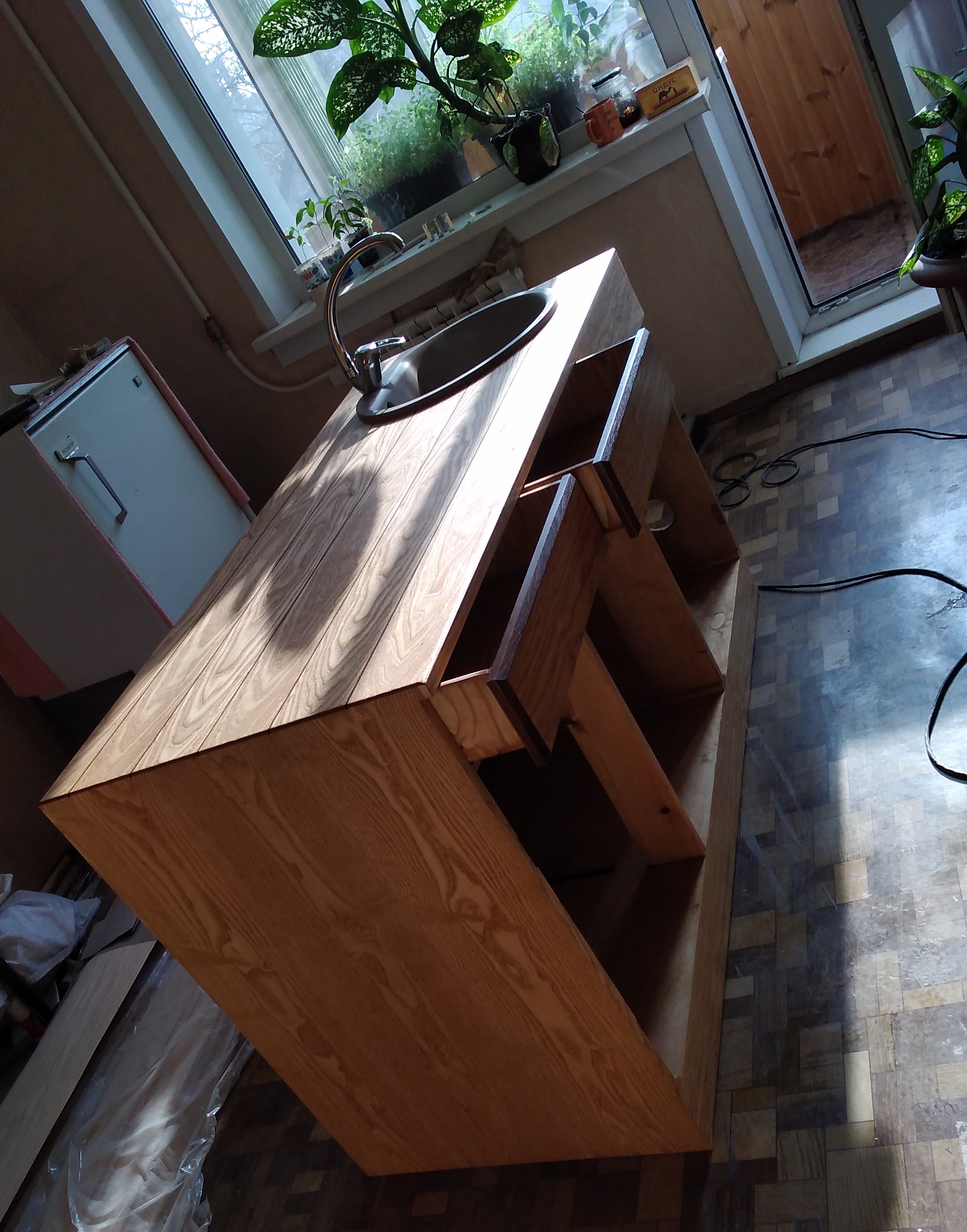 примерил ящики и мойку, со старым смесителем. |