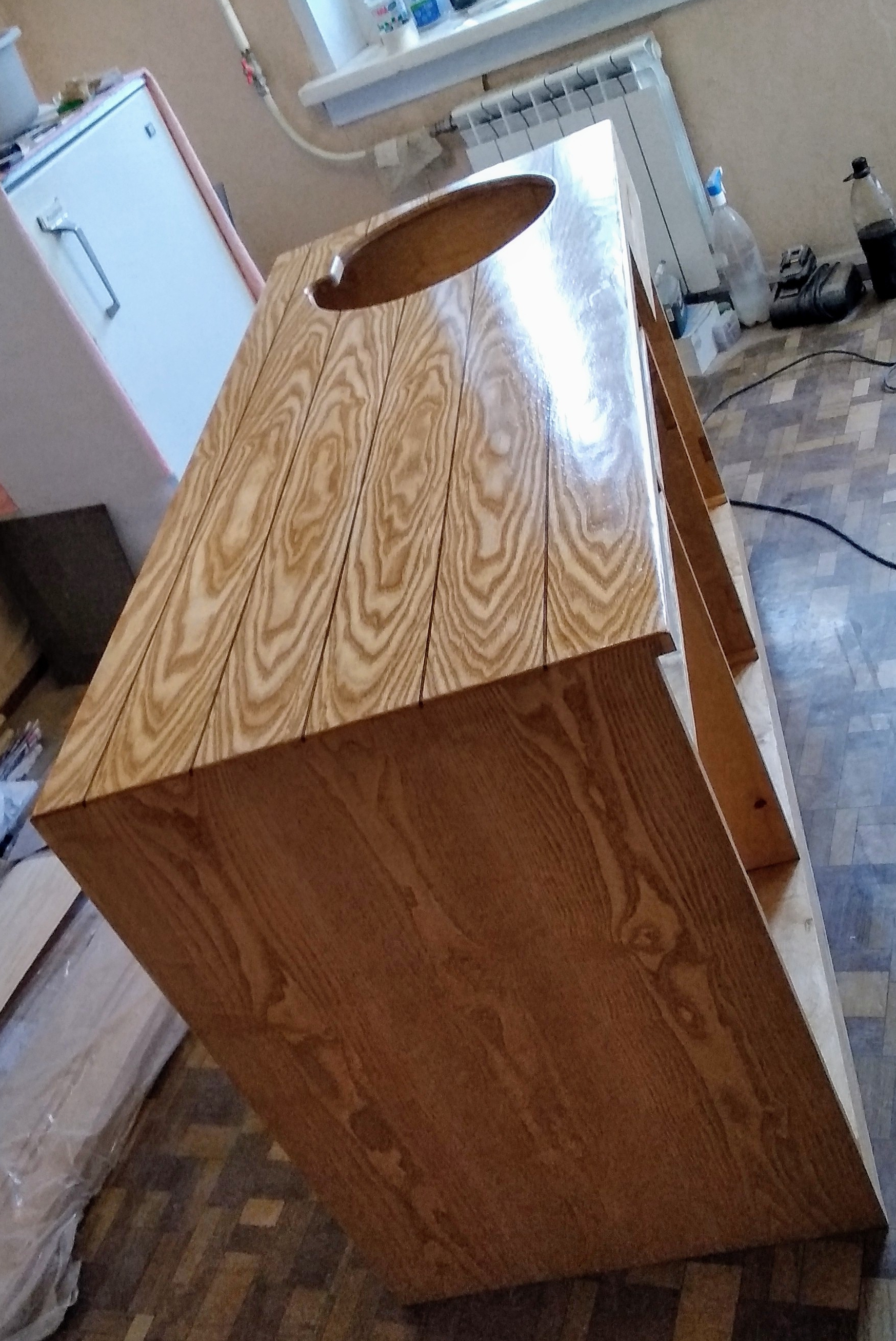 Я пилил, сынишка помогал шлифовать и морилкой покрывал.