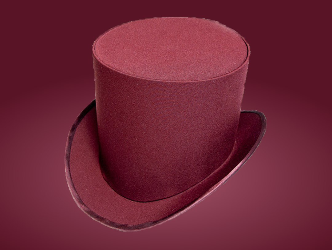 Шляпа цилиндр цвета бордо, бургундского вина, марсала. |