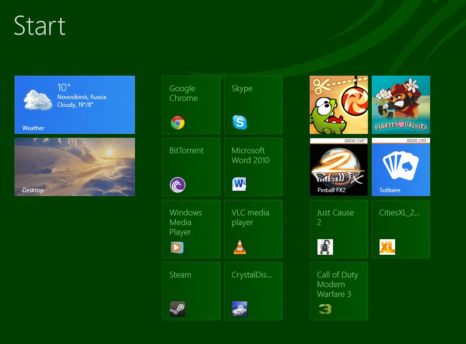| Вчера впервые поставил восьмёрку, этот свежий консюмер превью... уже начал ненавидеть метро ЮИ, переход между экранами через углы и т.д.... надеюсь можно будет его совсем отключить. |
