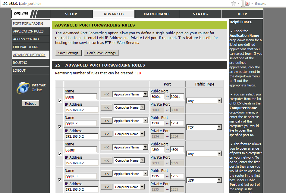 | Подскажите пожалуйста, как открыть порты на маршрутизаторе сабжа. Прошивка tp. |