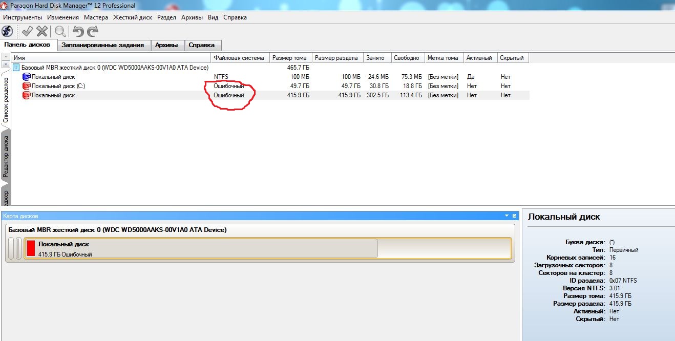 вот скачал, вообще написано тип файловой системы Ошибочный.