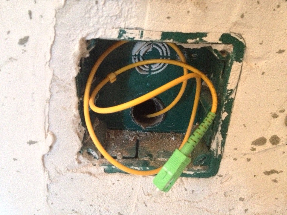 Чтобы не тянуть оптику далеко (ну тут нужно еще посмотреть что дешевле) - повторюсь - можно тутже рядом с розеткой поставить любой коммутатор с портом для оптики и с него уже тянуть витую пару (она уже вроде даже плоская продается)