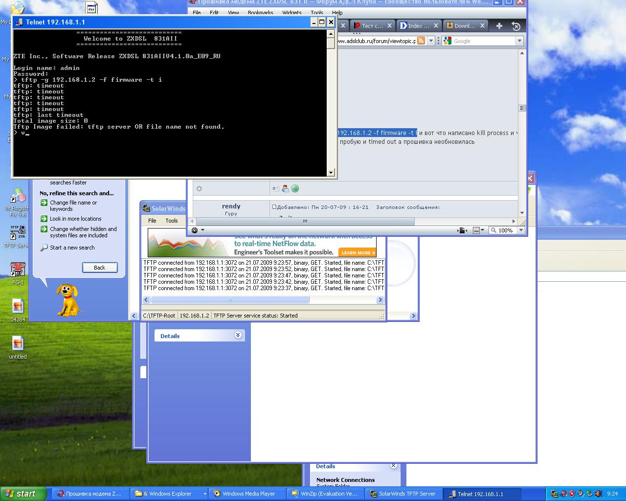 Пробывал так tftp -g 192.168.1.2 -f firmware -t i и вот что написано kill process и чтото дальше потом модем перезагрузился снова пробую и timed out а прошивка необновилась |