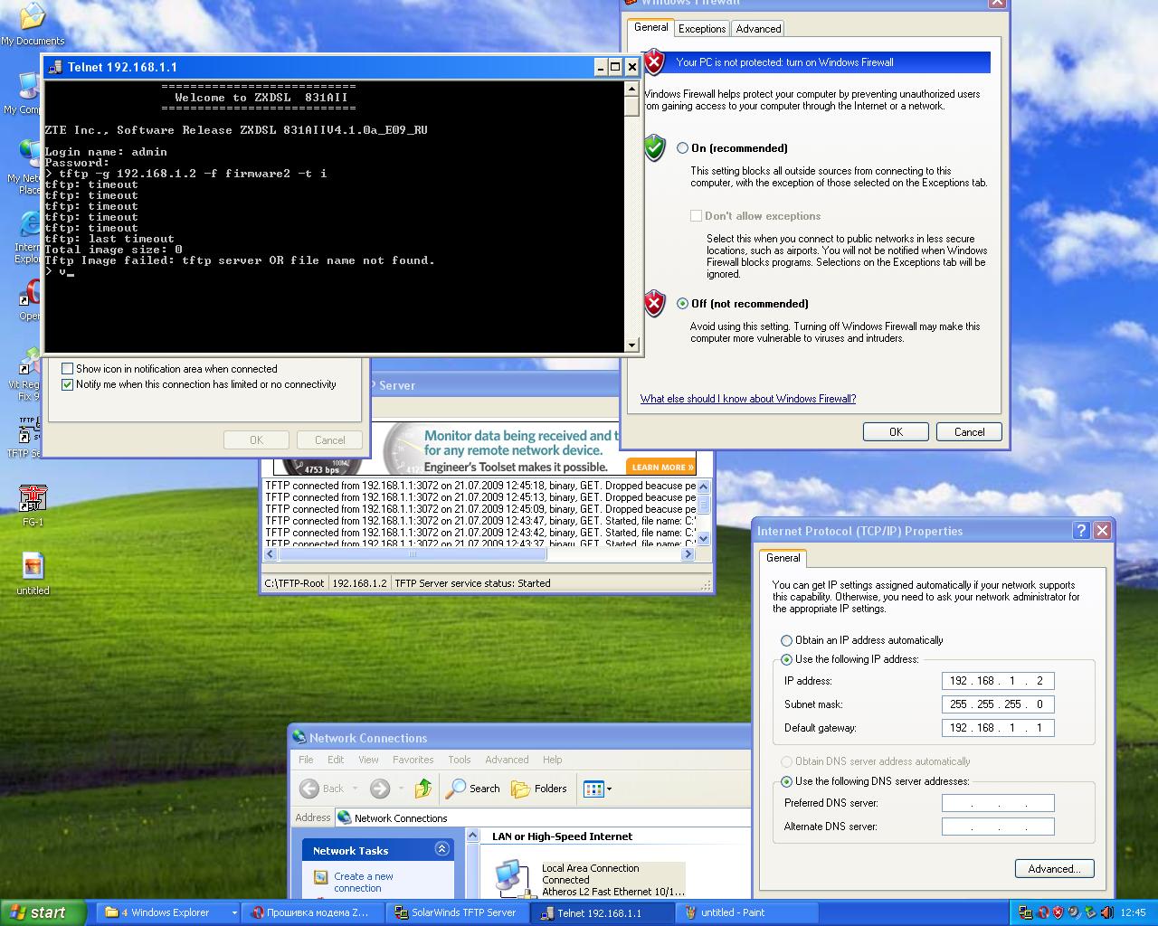 точно так и написано firmware2 в tftp сервере написано TFTP connected from 192.168.1.1:3072 binary , get started , filename C:\TFTP-Root\firmware ,file size 1889022 а потом вот что binary get dropped peer didnt respond а в telnet вот что написано