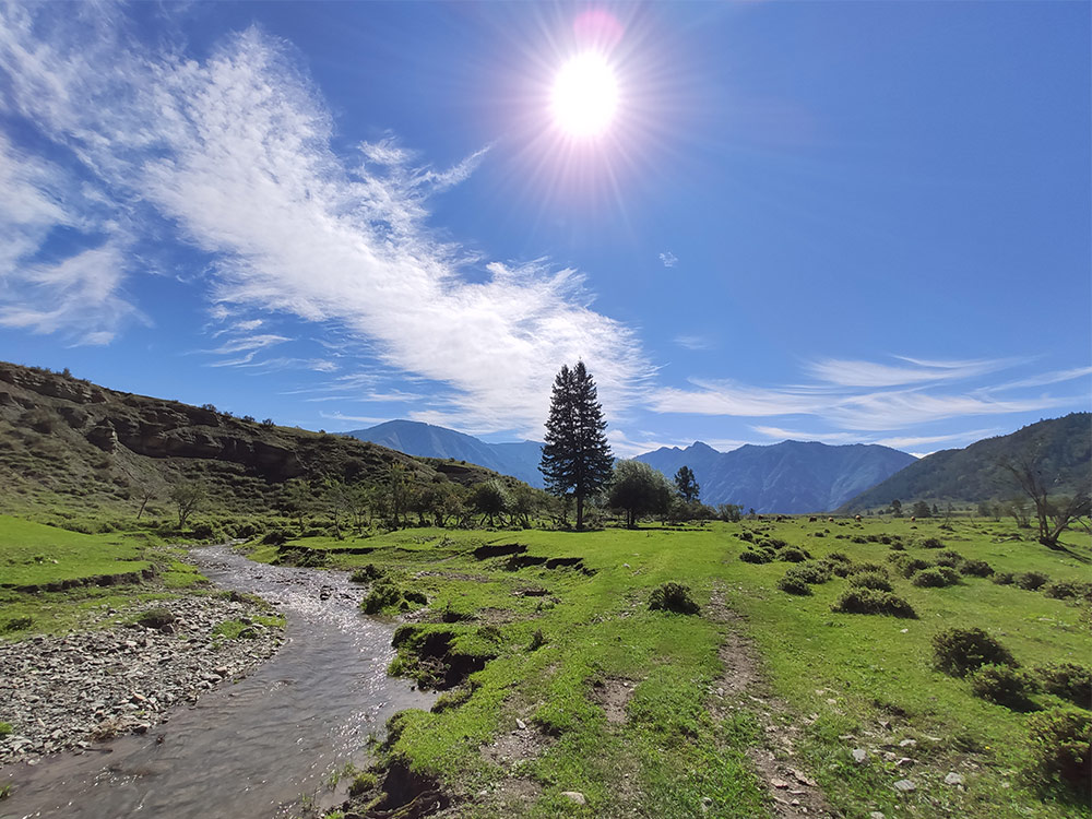 А тут мало того, что прелестный пейзаж, так ещё от солнца лучи, как спецэффекты...