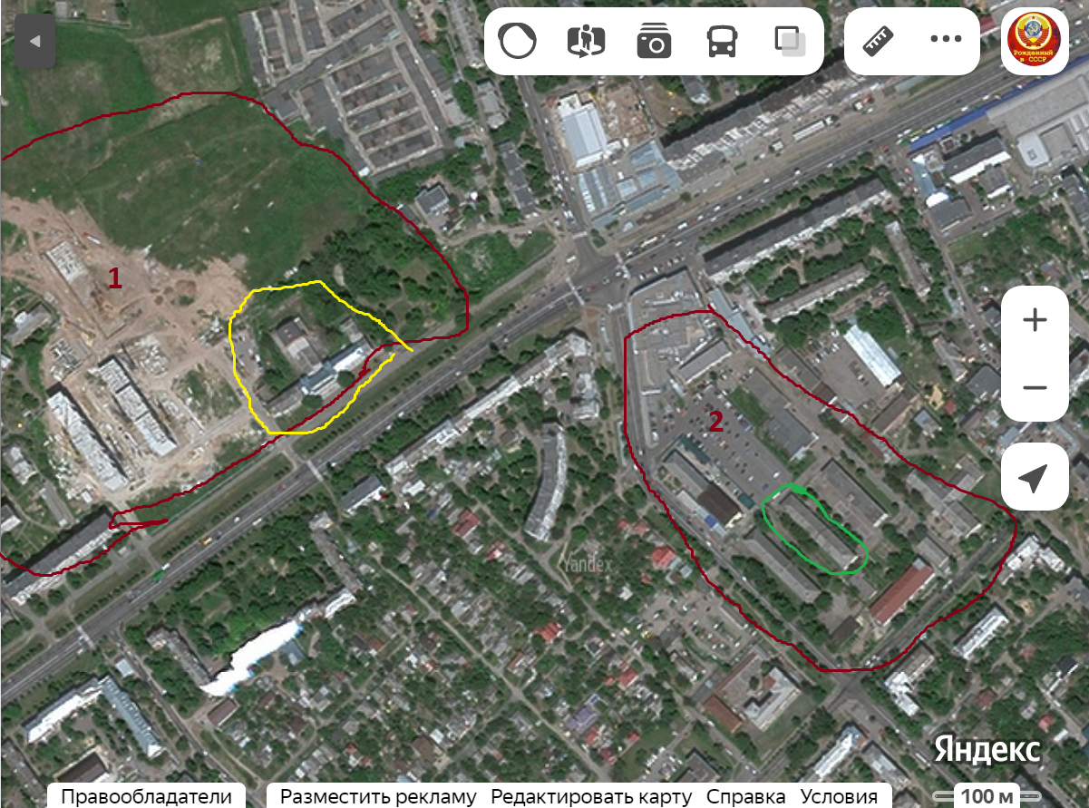 Может довелось тебе бывать на холодной горке в доме офицеров, так вот он был на терретории части в которой я начал службу учебка ПВО. Где дом офицеров это был 1 городок желтым обвел дом офицеров он же был и штабом, а второй городок тож отметил цифрой 2.